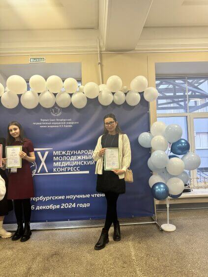 Студентка 3 курса 49 группы заняла III-место в Санкт-Петербургских научных чтениях-2024 года на X Международном Молодежном Медицинском Конгрессе в Первом Санкт-Петербургском государственном медицинском университете имени академика И.П.Павлова