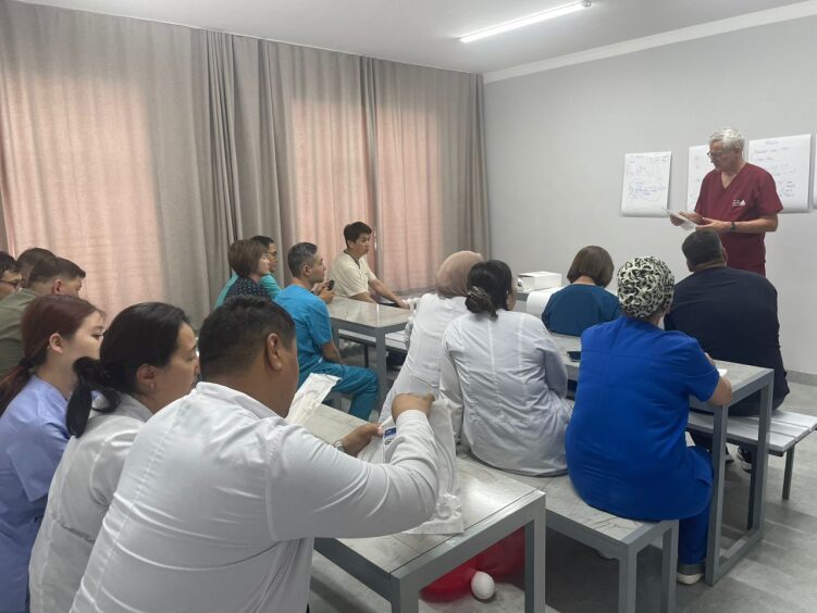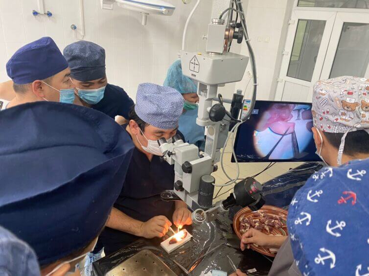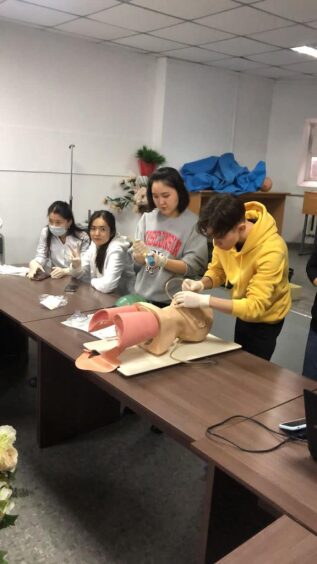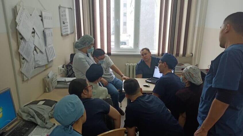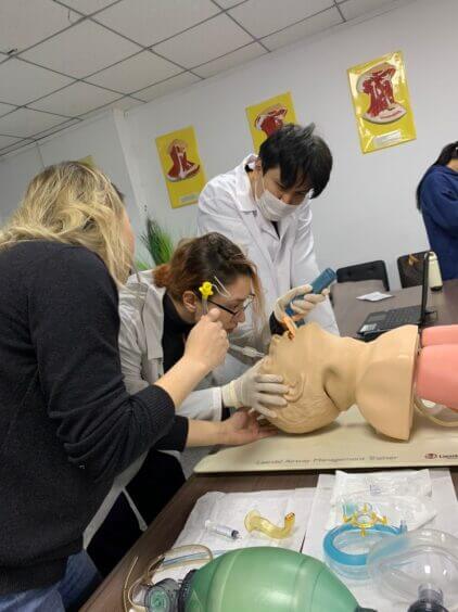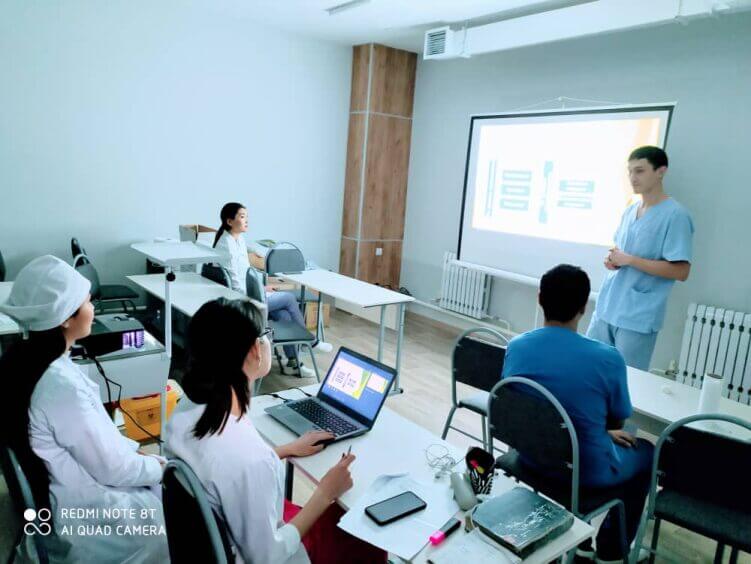 Симуляционный курс проводится под руководством преподавателей кафедры ст.пр. Аттокуровой Р.М., ассистентом Элдияровой А.Э. и инструктором по стимуляционному курсу врачом –эндоскопистом Рахматовым К.Б. Особое внимание уделяется формирование практических навыков, необходимых для самостоятельный клинической работы, а также развитию клинического мышления и умению работать в команде.