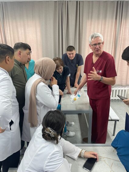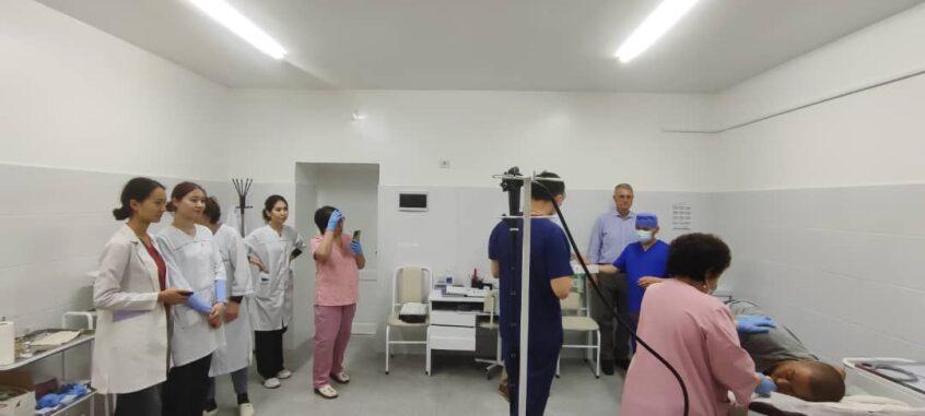 Обучения по гастроскопии и колоноскопии , полипоэктомии и остановка кровотечении, пунционной биопсии печени под контролем УЗИ в отделении гастроэнтерологии и эндоскопии в РДЛЦ КГМА. Мастер класс проводил профессор Маттиес Брайдер, эксперт из Щвейцарии. В мастер классе участвовали ст.преп Аттокурова Р.М. и ординаторы 2 и 3 годы обучения по специальности "Гастроэнтерология". а также врачи эндоскописты , асс каф.
