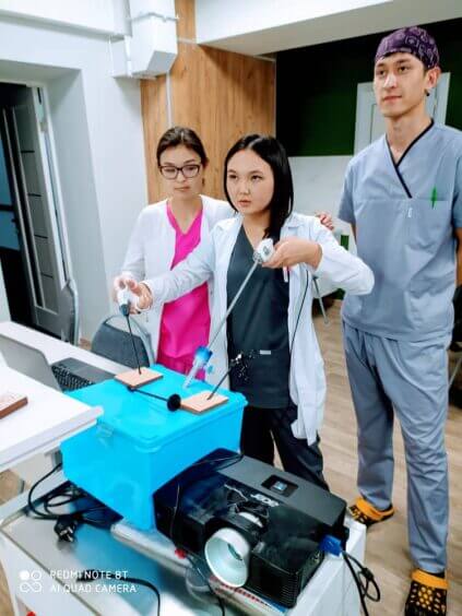 Ординаторы 2 годы обучения Турдалиева Айжан, Эмильбекова Жанара, Абылкасым кызы Айдана, Нурпазылова Акинай и Тинадил кызы Сабыргул уже самостоятельно делают диагностическую гастроскопию и колоноскопию , проходят сертифицированный курс первичную специализацию в рамках практической подготовки ординаторов по эндоскопическом методом исследовании ЖКТ.