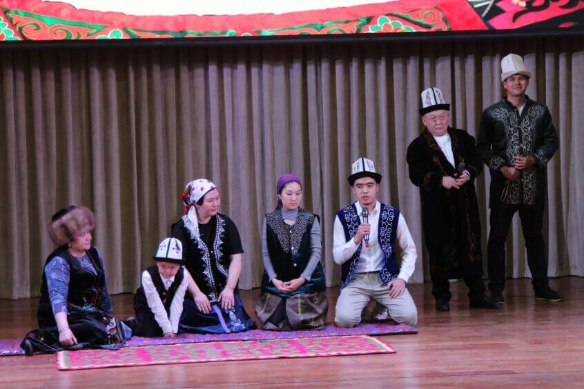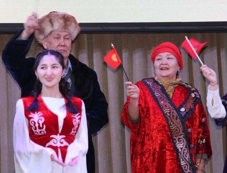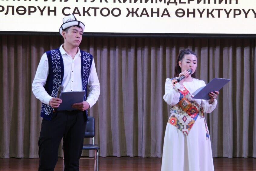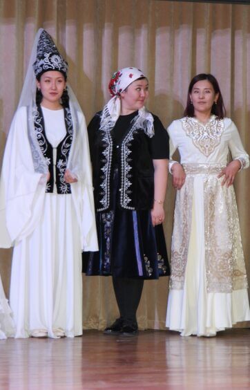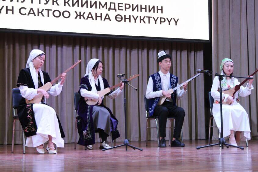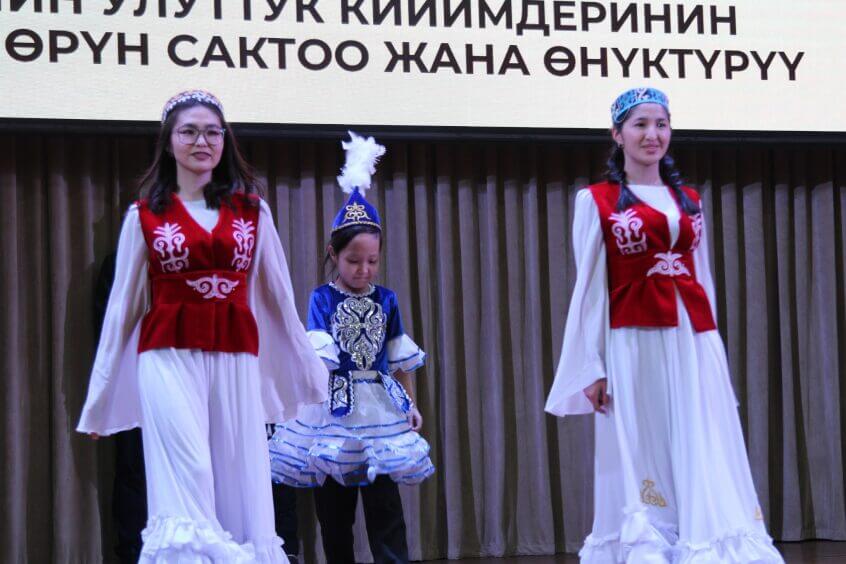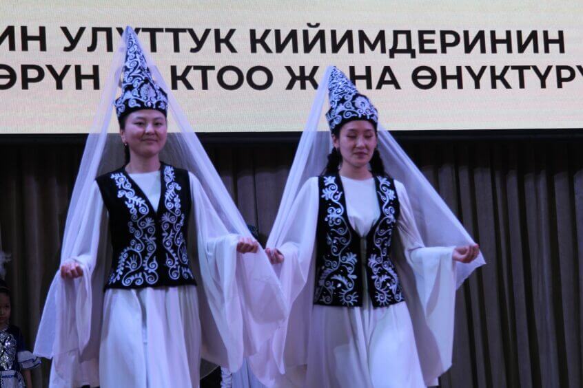 В рамках мероприятия на сцене была представлена этно-мода традиционной одежды кыргызского народа.