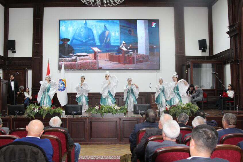 На сцене выступали ансамбль комузистов, хореографический ансамбль КГМА, вокалистка Шипулина М.С., КВНщики прошлых лет и ,конечно же, сам Анэс Гургенович.