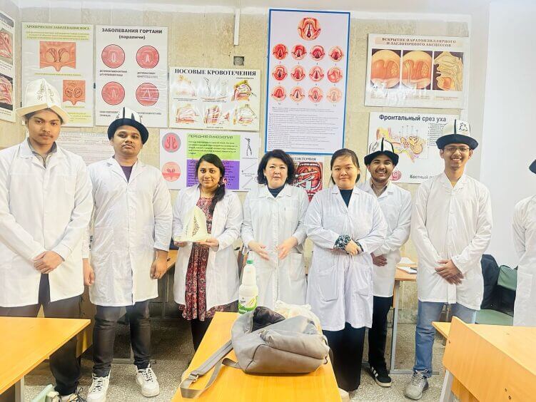 5 марта 2025 года преподаватели кафедры оториноларингологии провели празднование дня Ак Калпака. К.м.н., доценты Арзыкулова Г.С. и Нарматова К.К., ассистент Бакиева К.К. с курируемыми группами факультета ЛДАЯО организовали праздничное мероприятие, рассказали об истории калпака.