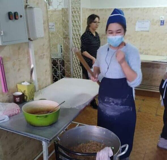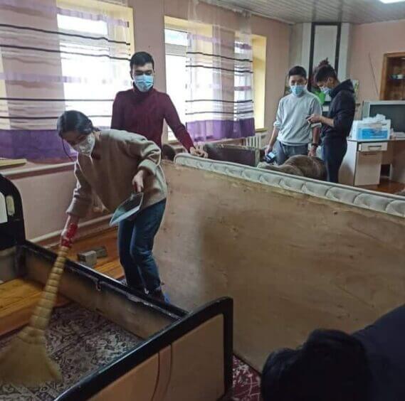 В рамках посещения ребята помогли в уборке комнат, столовой и залов, активно включились в работу по подготовке на кухне, также убрали территорию дома престарелых.