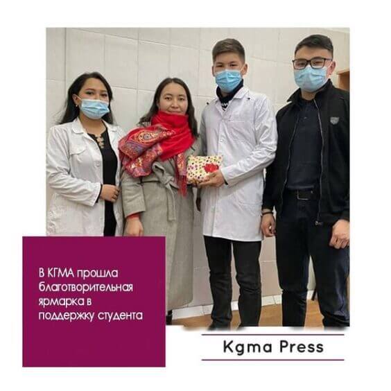 На днях во всех корпусах Медакадемии Кыргызстана прошла благотворительная ярмарка в поддержку студента 6 курса педиатрического факультета КГМА Олжобаева Бакая. Благодаря неравнодушным людям организаторам ярмарки удалось собрать 58 010 сом и передали данную сумму представителю Бакая.