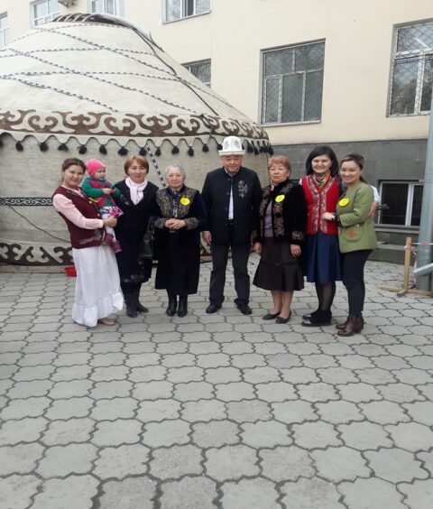 Госпиталдык терапия белумунун (N 1 шаардык клиникалык оорукана) кыз-маткерлеринин фотосу, солдон онго карай: старший лаборант Мокеева З.Б., Атабаева Д.Н., Садыкбек кызы Асел, м.и.д. Маматов С.М. (бөлүмдүн башчысы), м.и.к. Махмануров А.А., доцент Курумшиева А.Ш., Арстанбекова М.А., Жумашалиева Ч.С., Иманалиева Ф.Э., доцент Мергенбаева Т.К., Канат кызы Базира, Жаныбекова С.А.