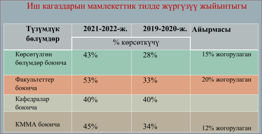 2. Иш кагаздарын мамлекеттик тилде жүргүзүү;