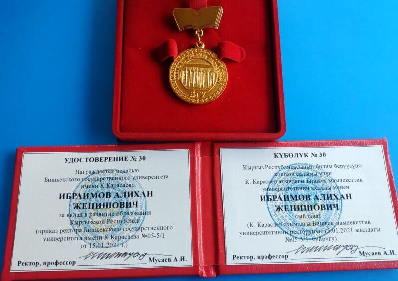 Кечээ, 2021-жылдын 27-апрелинде Кыргыз Республикасынын жогорку окуу жайларынын ассоциациясынын төрагасы, К.Карасаев атындагы Бишкек мамлекеттик университетинин ректору Абдылда Мусаев кыргыздын чыгаан аалымынын мурастарын иликтеп, эл арасына жайылтуу боюнча астейдил аракеттенип жүргөн И.К. Ахунбаев атындагы Кыргыз мамлекеттик медициналык академиясынын ординатору Алихан Ибраимовго Кусейин Карасаев медалын тапшырды.