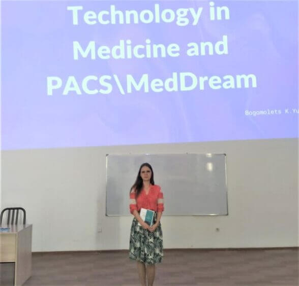 Ксения Юрьевна катышуучуларга Телемедицина, заманбап санариптик медициналык аппараттар жана алардын PACS системалары менен өз ара иштөөсу жөнүндө айтып берди. Ошондой эле маммология, электрокардиография, томографиянын бардык түрлөрү, радиография жана рентгенография сыяктуу багыттар каралды.