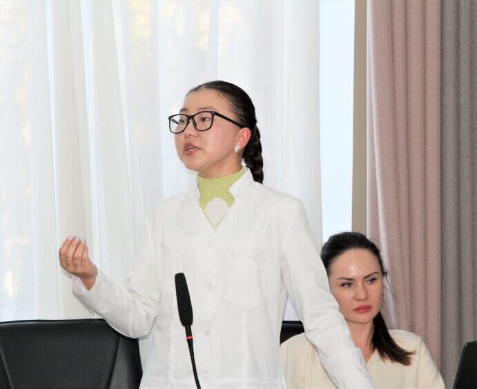 Ошондой эле №1 дарылоо иши факультетинин студенттери Турганбаева Шерзаада, Бекмурзаев Автандил мазмундуу баяндамалары менен келген коноктордун алкышына ээ болушту.
