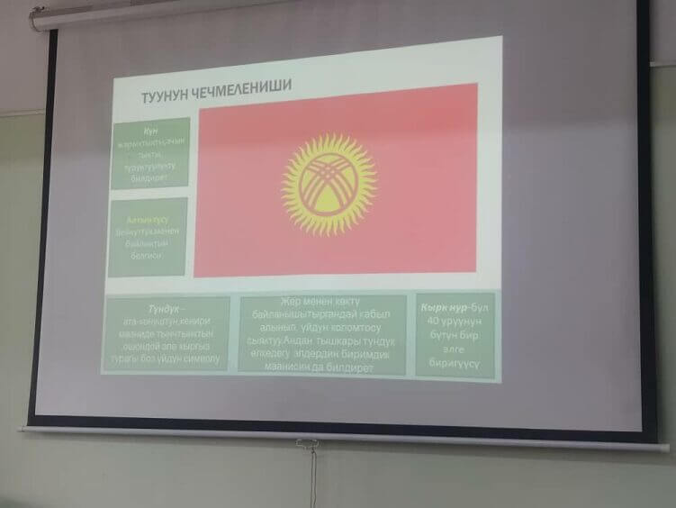 2022-жылдын 2-мартында КРдин Мамлекеттик туусунун 30 жылдыгына карата студенттерге тематикалык видеоматериалдар көрсөтүлүп, талкуу уюштурулду.