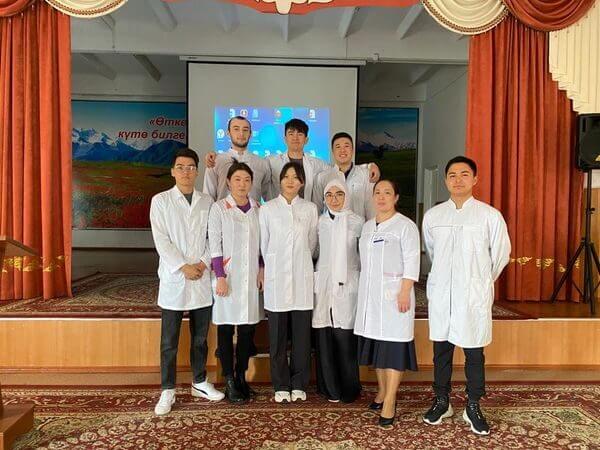 Кечээ жакныда И.К.Ахунбаев атындагы КММАнын Дарылоо иши факультетинин 6-курсунун 18-группасынын студенттери №1 акушердик жана гинекология кафедрасынын ассистенти А.Сыдыкованын жетекчилиги астында Бишкек шаарынын No3 орто мектебинин 7-8-класстарынын окуучуларынын арасында «Тамеки тартуунун зыяны», «Өспүрүмдөрдүн репродуктивдүү ден соолугун сактоо» деген темаларда санитардык-агартуу иштерин жүргүздү.