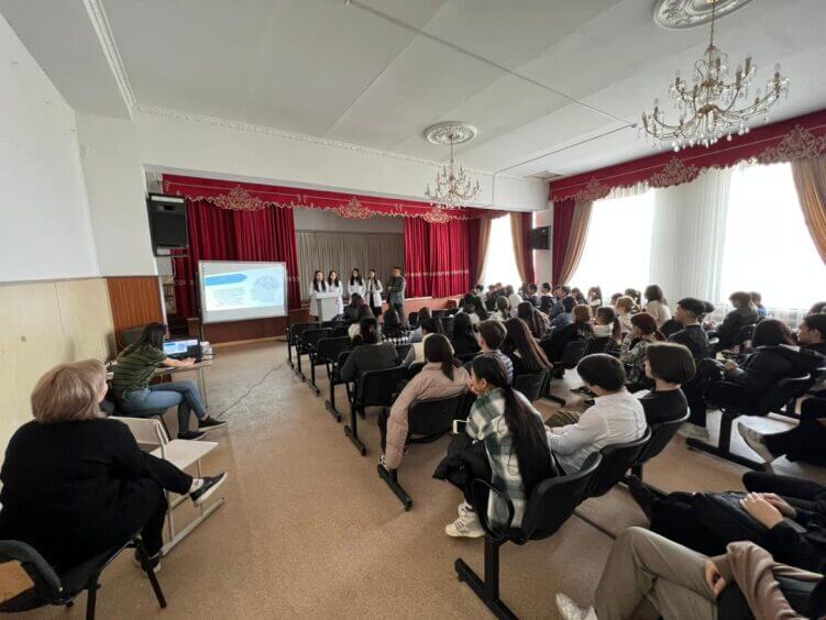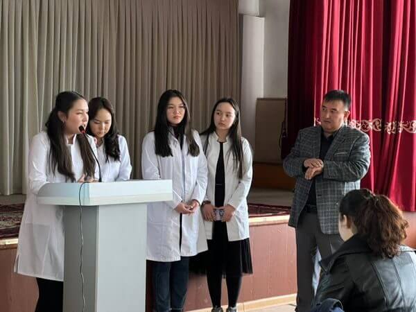 Окуучулар университет жөнүндө, медициналык профилдеги кесиптер, кабыл алуу шарттары ж.б.у.с. жөнүндө маалымат алышты.