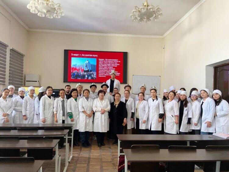 И.К. Ахунбаев атындагы КММАнын фармакогнозия жана дары каражаттарынын химиясы кафедрасы 2024-жылдын 4-5-марттарында «Ак калпак» жана «Кыргыз мамлекеттик туу» күндѳрүнѳ карата арналган чоң масштабдуу куратордук саат ѳткѳрүлдү.
