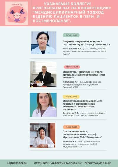 Кыргыз Республикасынын акушер-гинекологтордун “Эне жана бала” ассоциациясынын колдоосу менен И.К.Ахунбаев атындагы КММАнын М.С. Мусуралиев атындагы акушерлик жана гинекология кафедрасы 2024 жылдын 4 –декабрында профессор М.С. Мусуралиевтин 70-жылдыгына карата эскерүү кечеси өттү.