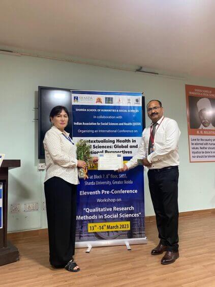 И.К.Ахунбаев атындагы КММАнын чет тили жана латын тили кафедрасынын окутуучулары 2023 - жылдын 13-мартынан 16-мартына чейин Индия малекетиндеги Шарда Университетинде « Социалдык идимдерде калктын саламаттыгыгын контекстештируу: глобалдык жана улуттук перпективалар» аталышындагы илимий эл аралык практикалык конференцияга катышышты.