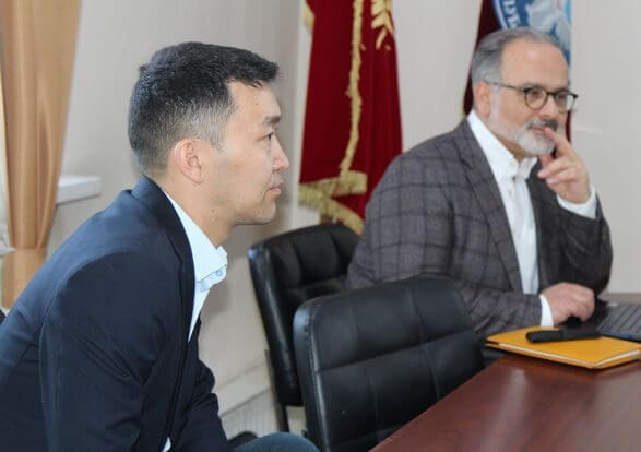 Талкууга ректор И.Кудайбергенова, Эл аралык байланыштар жана стратегиялык жактан өнүктурүү боюнча проректору Г.Жумалиева, Илим жана илимий-изилдөө иштери боюнча проректору Н.Маматов жана башка кызматкерлер катышты.