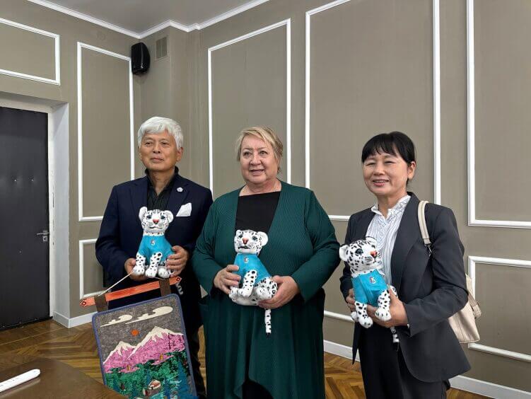 КММАнын ректору Индира Орозобаевна Кудайбергенова проректорлор жана эл аралык байланыш бөлүмүнүн жетекчилиги менен бирге конокторду жылуу тосуп алды.