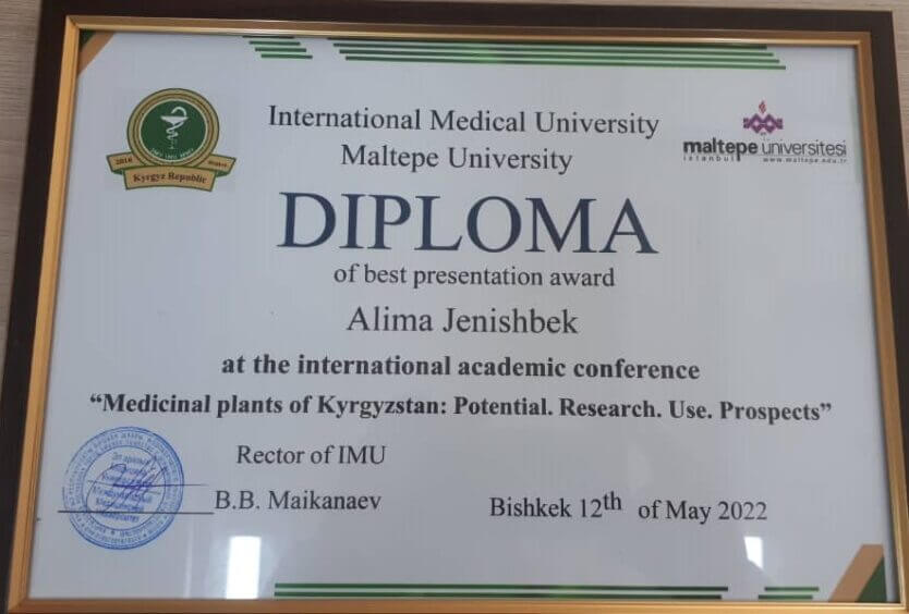 2022-жылдын 12-майында Бишкектеги Эл аралык медициналык университетинде “Кыргызстандын дарылык өсүмдүктөрү: изилдөө потенциалы, колдонулушу, келечеги” аттуу Эл аралык илимий-теориялык жана практикалык конференция болуп өттү.