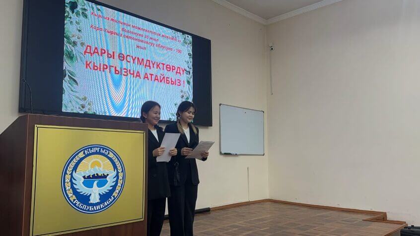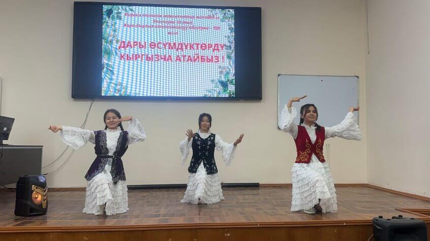КР билим жана илим министерствосу тарабынан 2024-жылдын 10-сентябрынан 2024-жылдын 10-декабрына чейин мамлекеттик тил күнүнө карата 3 айлык жарыялаган. Бул эң маанилүү эки юбилейге байланыштуу – мамлекеттик тилдин кабыл алынганына 35 жыл жана Кара-Кыргыз автономиялуу облусунун түзүлгөнүнүн 100 жылдык маарекесине арналган иш чараларды КММАнын фармакогнозия жана дары каражаттарынын химиясыныны кафедрасынын окутуучулары жана 4-курсунун студенттери “Дары ѳсүмдүктѳрүн кыргызча атайбыз “ деген темада окуу практикалык конференциясын ѳткѳрүштү.