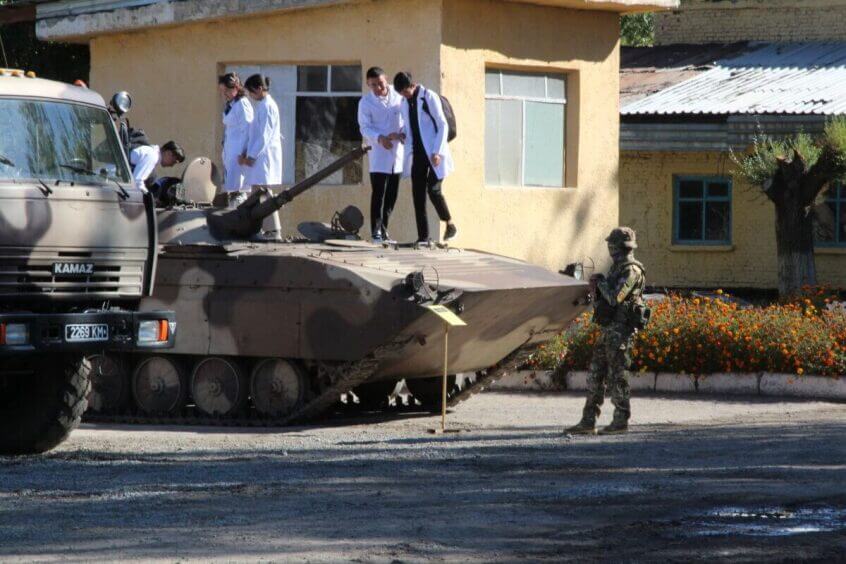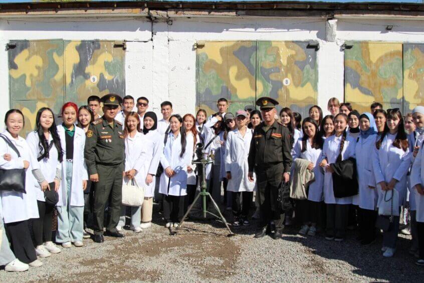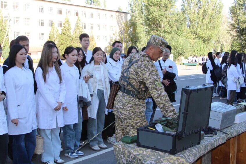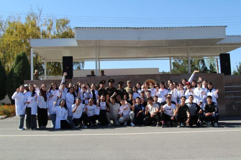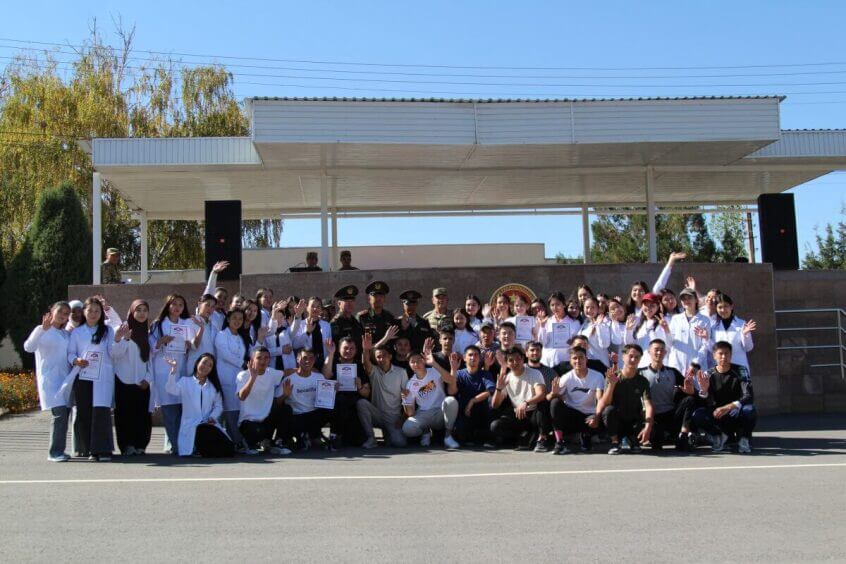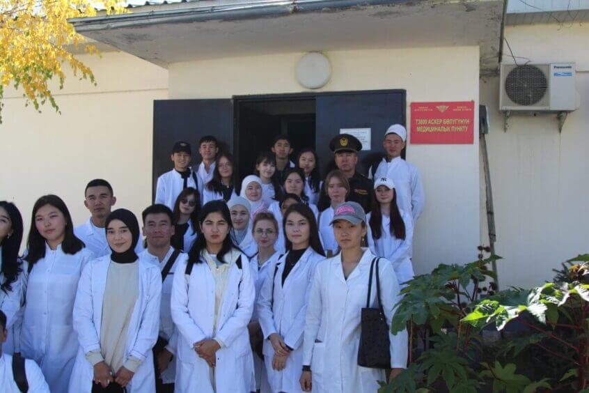 КММАнын стоматология, фармацевтика, профилактикалык медицина, жогорку медайымдык иш факультеттеринин студенттери Кой-таш айылындагы 73809 аскер бөлүгүндө болушту.