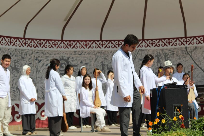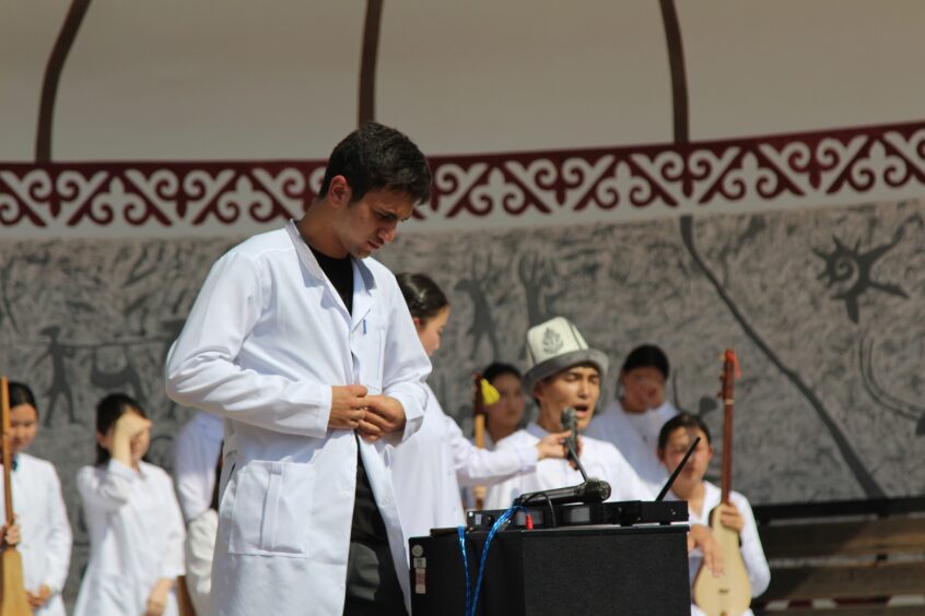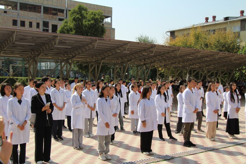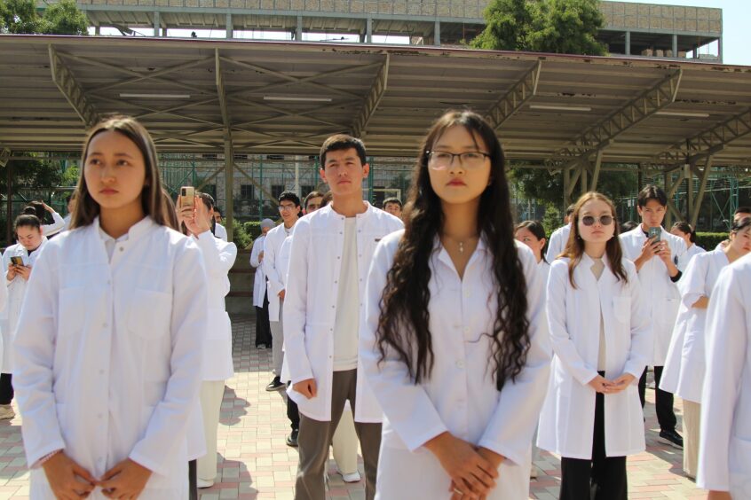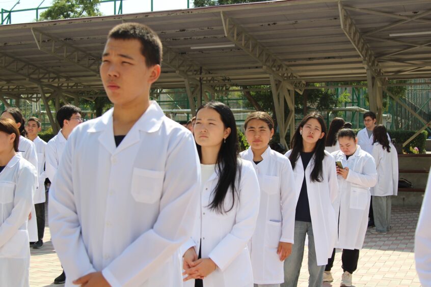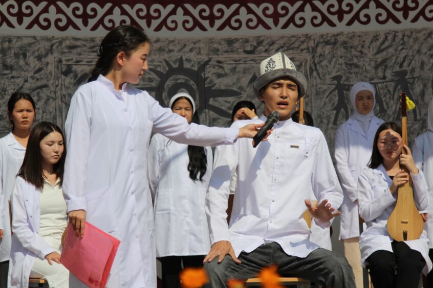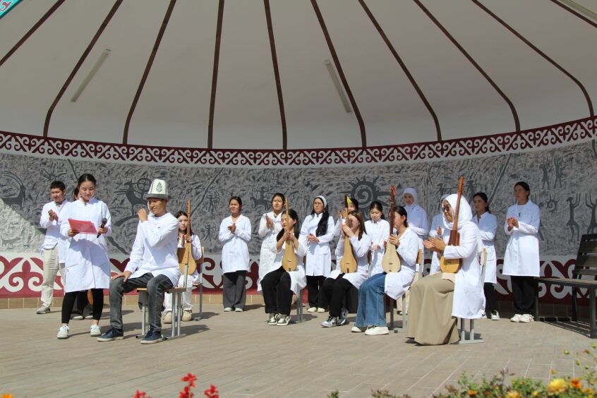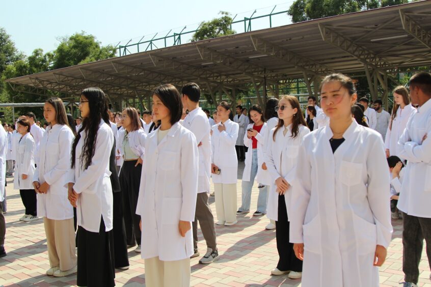И.К.Ахунбаев атындагы Кыргыз мамлекеттик медициналык академиясында Кыргыз Республикасынын Мамлекеттик тил күнүнө карата флешмоб өткөрүлдү.