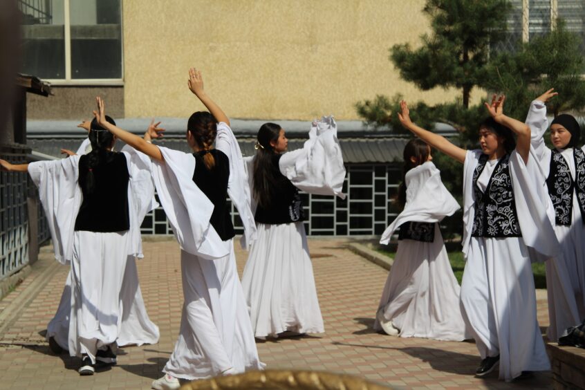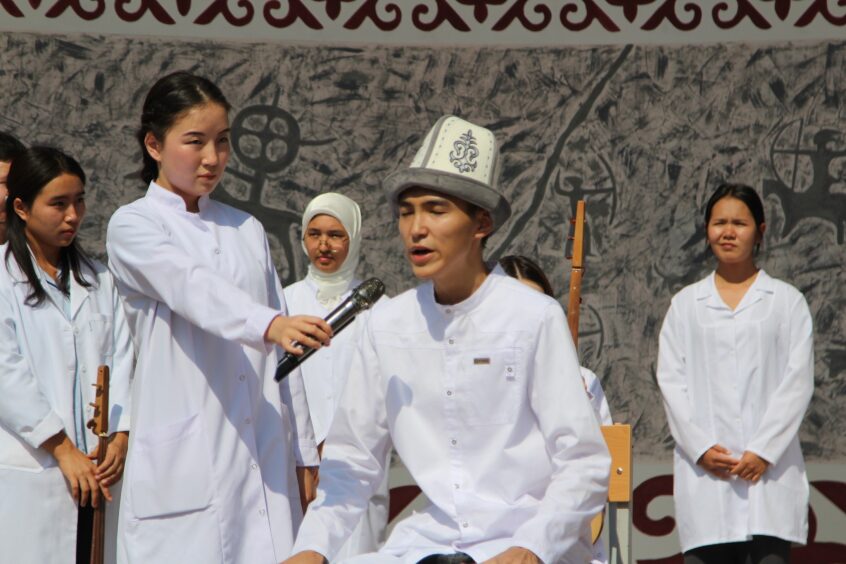 Студенттер эне тилибиздин маданияты, өнүгүүсү, байлыгы тууралуу кызыктуу маалыматтарды берип, ыр, дастан, «Манас» эпосун көркөм окушту.