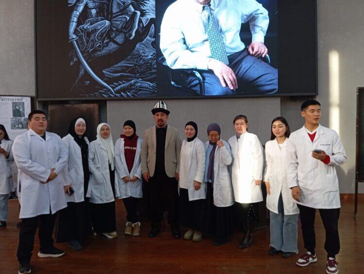 Студенттер активдүү катышып, манасчыга медицина менен байланышкан суроолорду берип, жооп алышты. Иш-чара кызыктуу өтүп, студенттер жакшы маанайда тарашты. Иш-чаранын алгында мамлекеттик тил секторунан келген Иноват Абдимажитовна корутунду сөз сүйлөдү.