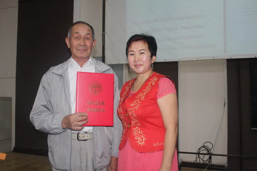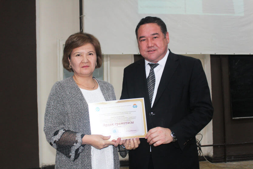 Ошондой эле, аталган иш-чаранын алкагында Индира Орозобаевна Республикалык “Кыргыз тили” коомунун президенти Раимжан Курбановдон кыргыз тилинин өнүгүшүнө кошкон салымы үчүн “Ыйык тил” төш белгиси менен КРдин Президентине караштуу Мамлекеттик тил боюнча улуттук комиссиянын Ардак грамотасы менен м.и.д.,профессор Чолпон Калканбаева, доцент Жумабек Сыдыков жана Ырысбек уулу Жоомарт сыйланышты.
