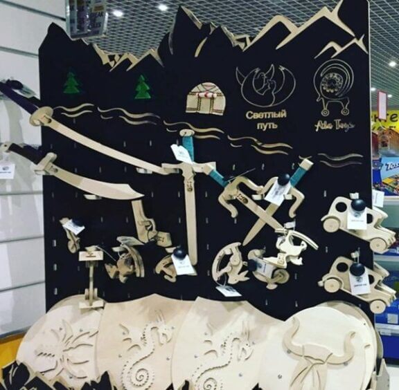 Балдар үйүнүн тарбиялануучусу үй тааныштырып, балдар жасаган жыгач буюмдарынын коллекциясын көрсөттү.