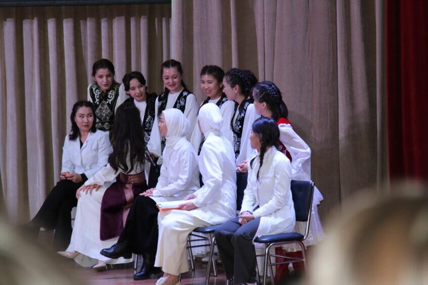 И.К.Ахунбаев атындагы КММАнын жыйындар залында Аскердик медициналык даярдык жана экстремалдык медицина кафедрасынын студент-жигиттери менен Медакадемиянын "Даарыло иши" жана "Педиатрия" факультетинин кыздары арасында кыз-жигит «Сармерден» концерт-сынагы болуп өттү.