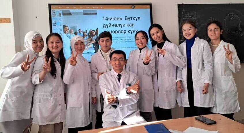 Анткени келечек ээлери И.К. Ахунбаев атындагы КММАнын медициналык биология, генетика жана паразитология илимдеринин кандидаты, доцент Раимкулов Курсанбек Мамасалиевичтин катышуусунда "Бүткүл дүйнөлүк кан донорлор күнү" аттуу темада иш чара өткөрүштү.