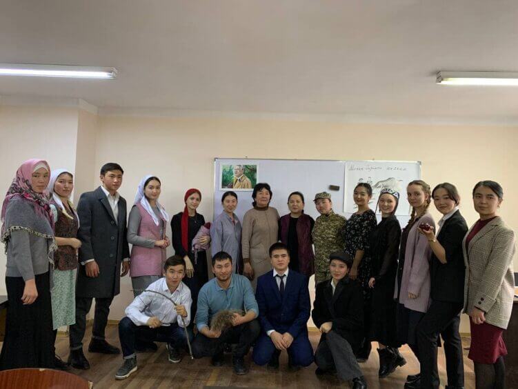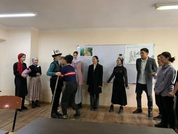 2021-жылдын 9-декабрында залкар жазуучубуз Ч.Айтматовдун 12-декабрь туулган күнүн утурлай, И.К.Ахунбаев атындагы КММАнын кыргыз тили кафедрасынын окутуучусу Ж.А.Дүйшөналиева МПД факультетинин 2-курсунун 2-3-тайпалары менен тарбиялык саат өткөрдү. Залкар жазуучунун чыгармаларын студенттер сахналаштырып, каармандардын образдарын ачып берүүдө чыгармачылык таланттарын көрсөтүштү.