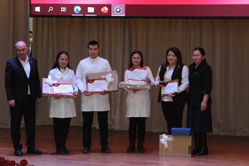 Ошондой эле, Кыргыз Республикасынын билим берүү жана илим министрлиги жана КТРК биргеликте уюштурушкан жогорку окуу жай, колледж, кесиптик лицей арасындагы “Манас таануу” теле таймашынын жыйынтыгы менен И.К.Ахунбаев атындагы КММАнын атынан барган “Илегер” тобу баш байгени багындырганына байланыштуу команданын ар бир катышуучусу ноутбук жана белектер менен сыйланды.