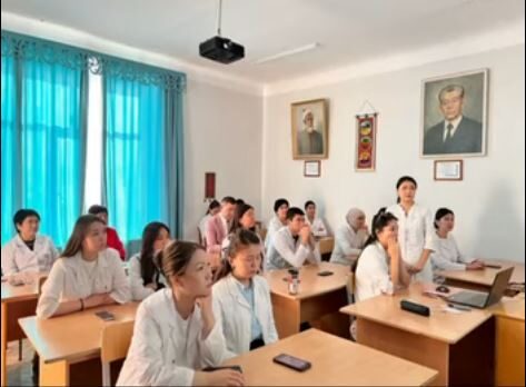 2024-жылдын 23-сентябрында И.К.Ахунбаев атындагы КММАнын коомдук саламаттык жана саламаттыкты сактоо кафедрасынын доценти Орозалиева А.А. №1 дарылоо иши факультетинин 6-курсунун 19-тайпасынын студенттери менен биргеликте Мамлекеттик тил күнүн белгилешти.