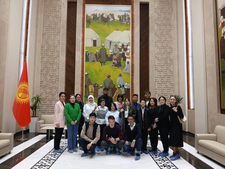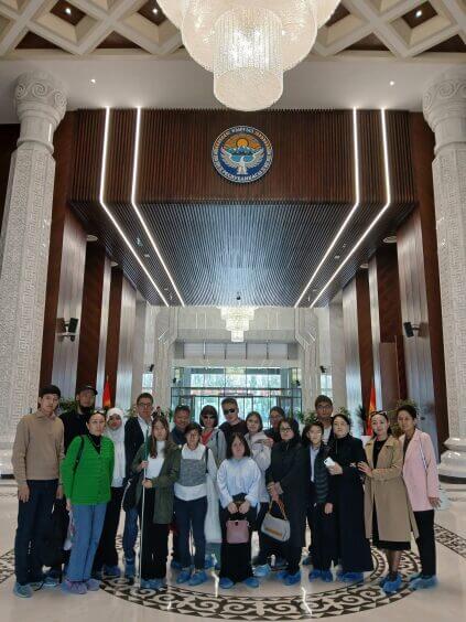 И.К.Ахунбаев атындагы КММАнын алдындагы медициналык орто окуу жайынын 1-2 курсунун көрүүсү боюнча майыптыгы бар студенттер жана мугалимдер Кыргызстандын тарыхы сабагынын «Кыргызстандын өнүгүү жолдору» темасынын алкагында, Президенттик Администрациянын жаңы Кыргызстандын архитектуралык символу болгон «Ынтымак-Манас Ордо» имаратына экскурсияга барышты.