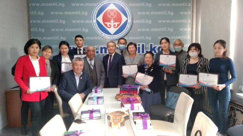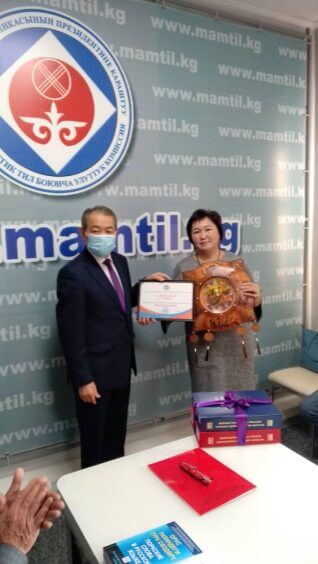 Женчулөргө сыйлыкты КР Президентине караштуу Мамлекеттик тил боюнча улуттук комиссиянын төрагасы Назаркул Ишекеев тапшырды.