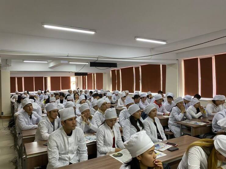 Жакында И.К. Ахунбаев атындагы КММАнын “Нормалдуу жана топографиялык анатомия” кафедрасында “Манас таануу жана анатомияны мамлекеттик тилде өнүктүрүү” темасы боюнча кече-конкурс өткөрүлдү. Анда 1, 2, 3-курстардын студенттери өзүн тааныштыруу жана саламдашуу, сүйлөө маданияты, анатомиялык терминдердин которуунун ылдамдыгы, аны түшүндүрүү, Калыстар тобу тарабынан берилген иш кагаздарын толтуруу, майрамдык куттуктоо, “Манас” айтуу, кыргыз бийлерин бийлөө жана ырларын ырдоо боюнча күч сынашты. Алардын ичинен мыктылар аныкталды жана алкоо, байгеге ээ болушту.