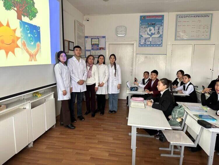 2023-жылдын 25-февралында Дарылоо иши факультетинин 3-курсунун 24-группасынын студенттери жалпы гигиена кафедрасынын куратору Байбосова Чынара менен биргеликте 69-УВК гимназиясынын окуучуларынын арасында «Тамекисиз мектеп» деген темада санитардык агартуу иштерин жүргүзүштү.
