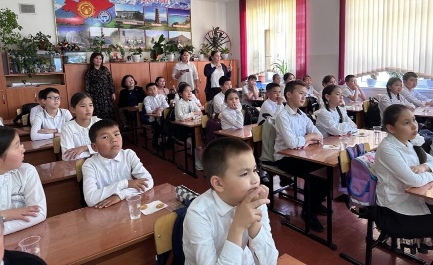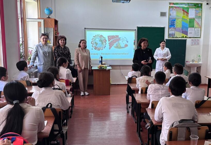 Жалпы гигиена кафедрасынын бөлүм башчысы Джорбаева А.А. жана мугалимдери : Жангазиева Э.С., Байбосова Ч.К. , Бейшеева А.К. жана дарылоо иши 2 факультетинин 3-курсунун студенти Коңурбаева Нурайым А.Сыдыков атындагы 72- мектеп гимназиясынын окуучуларына толук баалуу, "Туура тамактануу жана оорулардын алдын алуу" деген темада интерактивдүү лекция өтүштү. Абдан маанилүү жана кызыктуу өтүлдү. Мектептин окуучулары жана мугалимдери өз ыраазычылыгын билдирип, каалоо - тилектерин айтышты.