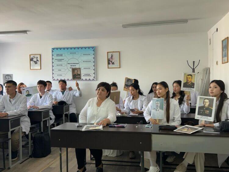 2025 –жылдын 29 – апрелинде И.К. Ахунбаев атындагы КММАнын Т.А. Абдылдаевич атындагы Философия жана коомдук илимдер кафедрада “Кыргызстан Улуу Ата Мекендик согуш жылдарында медицина” аттуу иш чара болду. Иш чараны кафедранын доценти Тентигул кызы Назира стоматология факультетинин 1 курсунун 12,13 тайпаларын ачык сабак өттүү.