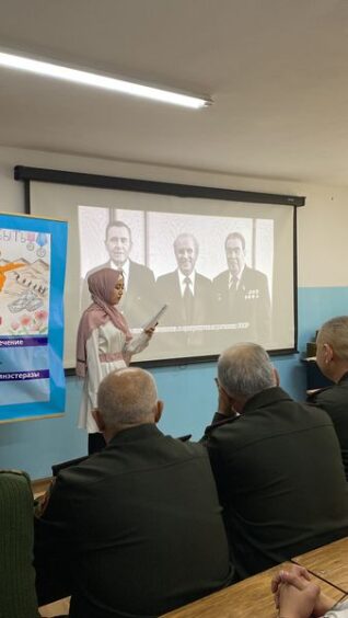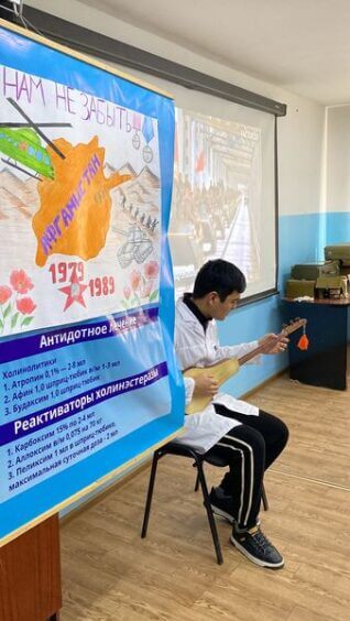 Ал эми Советтик аскерлердин чыгарылгандыгынын 34 жылдыгына карата педиатрия факультетинин 4-курсунун студенттери Аскердик-медициналык даярдык жана экстремалдык медицина кафедрасынын кызматкерлеринин жетекчилиги менен концерттик номер даярдашты. Иш-чарага жоокер-интернационалист, КММАнын ВМП жана ЭМ кафедрасынын окутуучусу, запастагы медицина кызматынын полковниги Нурмамбет Сартов да катышты.