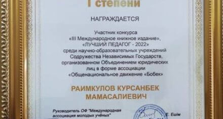 МедиаСүрөт галареясыКММАнын окутуучусу “КМШнын мыкты мугалими – 2022” жана “КМШнын мыкты илимий кызматкери – 2023” наамдары менен сыйланганКММАнын окутуучусу “КМШнын мыкты мугалими – 2022” жана “КМШнын мыкты илимий кызматкери – 2023” наамдары менен сыйланган