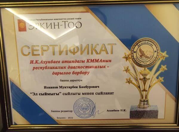 КММАнын РДД борбору «Эл сыймыгы» сыйлыгы менен сыйланды