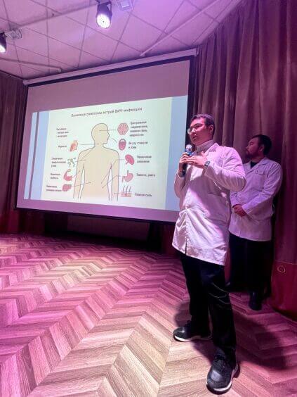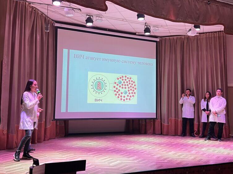 КММАнын студенттери жана кафедранын ассистенти студенттерге «ВИЧ-СПИД» деген темада лекция окушту