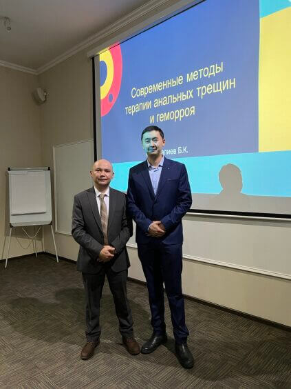 Ассистенты Осмоналиев Б.К. и Атакулов на конференции проктологов Кыргызстана-2022