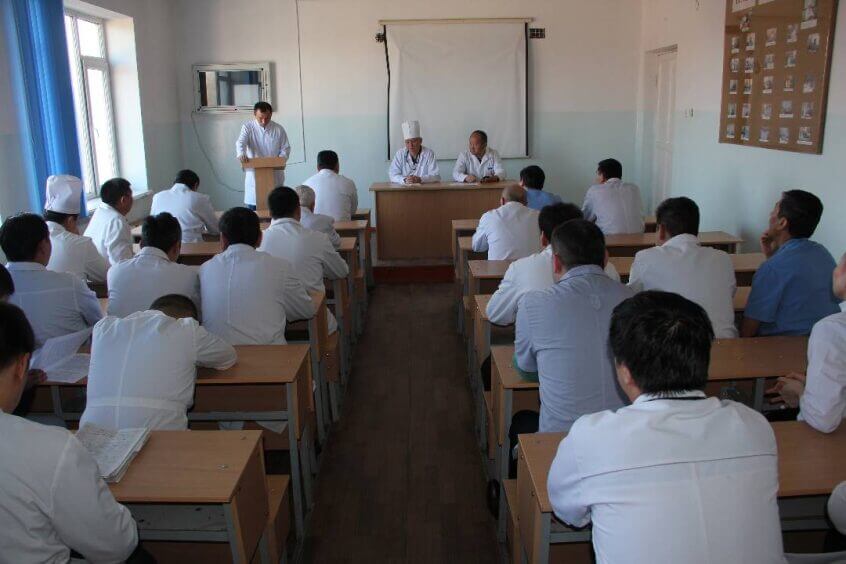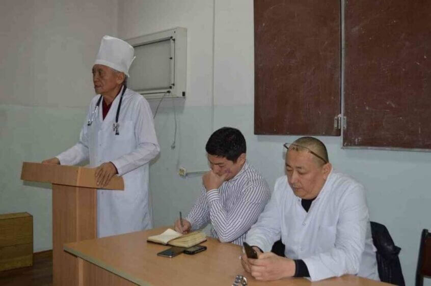 Утренняя пятиминутка под руководством профессора Оморова Р.А. (2016).