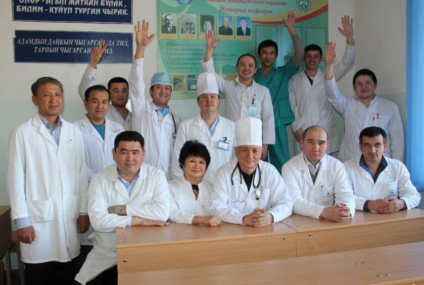 К 1967г на кафедре в качестве клинических ординаторов прошли хирургическую подготовку более 25 человек. Многие из них стали известными хирургами: Дьяченко Н. (главный хирург Брянской области, депутат Верховного Совета СССР), Оссовская (зав. хирургическим отделением военного госпиталя в Туле), Хайгрехт С.И. (зав. хирургическим отделением республиканской клинической больницы г.Фрунзе), Пачес А.И. (профессор-онколог в Москве), Калыкулов А. (главный врач больницы Араванского района Ошской области), Карабаева С. (ассистент кафедры патофизиологии Алма-Атинского медицинского института).
