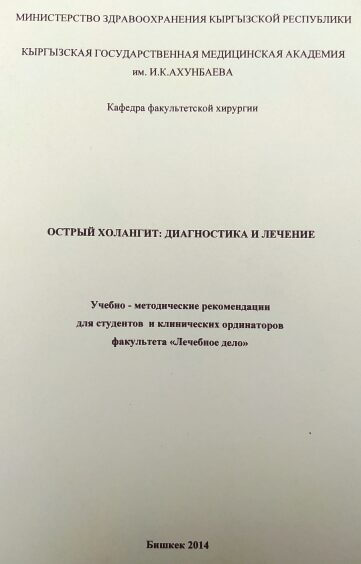 Амерханов А.К., Оморов Р.А., Конурбаева Ж.Т.). Основное внимание было уделено вопросам показаний к операции, определению состояния печени, поджелудочной железы и желудка после холецистэктомии, что позволило наметить пути профилактики осложнений и внедрить их в клинике в ближайшие и отдаленные сроки после операции.