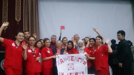 Универсиада посвященная 90-летию со дня рождения академика Миррахимова М.М. Участники: клинические ординаторы и студенты кружковцы вместе с д.м.н. Маматовым С.М., д.м.н., профессором Бримкуловым Н.Н. и доцентом Курумшиевой А.Ш.
